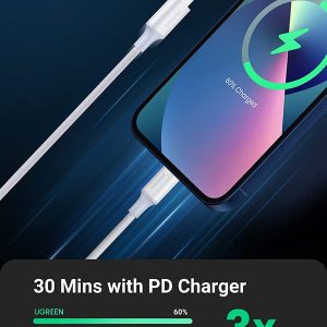 UGREEN 1 Meter MFI Certified Type-C to Lightning Cable Rubber Shell – 1 Year Warranty